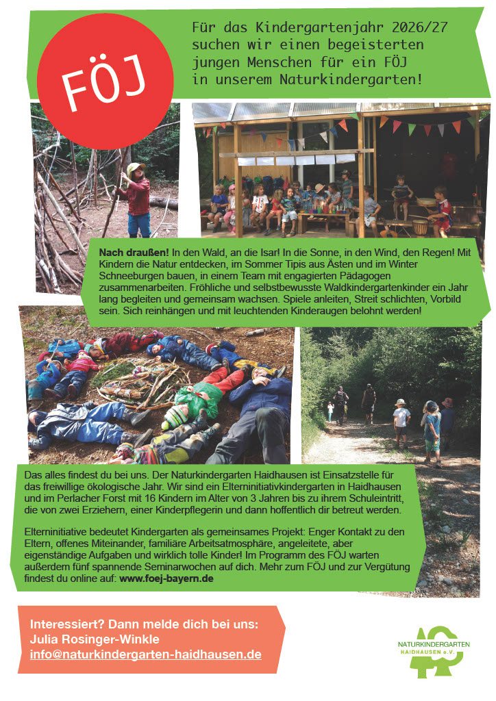 FÖJlerin und FÖJler für das nächste Kindergartenjahr 2026/27 gesucht! Wir freuen uns über deine Bewerbung!